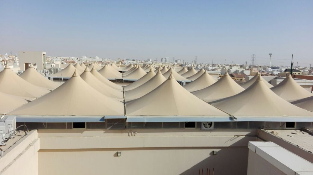 تعتبر مظلات الشد الإنشائي الحل العصري للمساحات الكبيرة مثل الملاعب والمدارس. توفر ظلًا واسعًا بتصميم مبتكر.