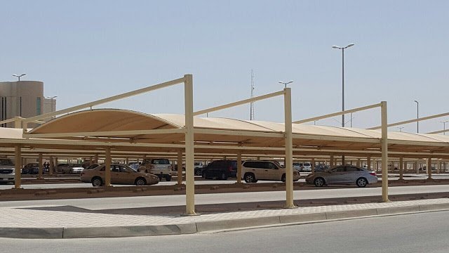- مظلات الألمنيوم: تتميز بمظهرها العصري والأنيق وتستخدم غالبًا في المواقف التجارية الخاصة.